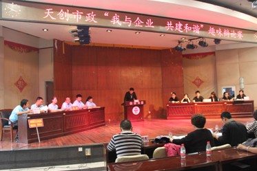 武漢天創(chuàng)市政建設工程有限公司組織舉辦“我與企業(yè) 共建和諧”趣味辯論賽,集團公司陳穎書記、邢榮斌主任等領導到場觀看了比賽。