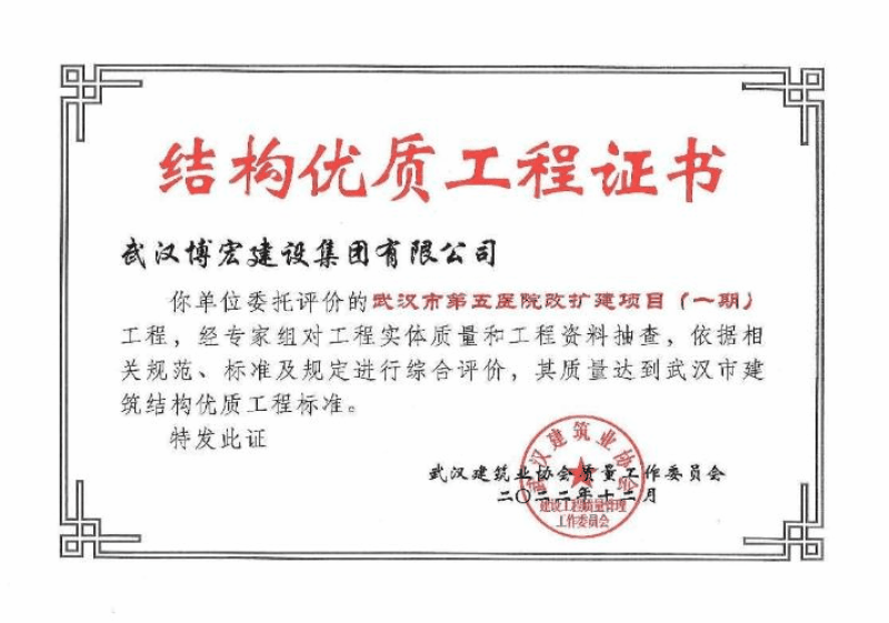 自開工以來,項目團隊始終堅持高起點、高標準、嚴要求,認真落實質(zhì)量保證措施,完成各項目標任務,積極推進建筑施工安全文明生產(chǎn)規(guī)范化、標準化、信息化建設,先后獲得了“湖北省建設工程安全文明工地”“湖北省結(jié)構(gòu)優(yōu)質(zhì)工程獎”“武漢市結(jié)構(gòu)優(yōu)質(zhì)工程獎”等榮譽。